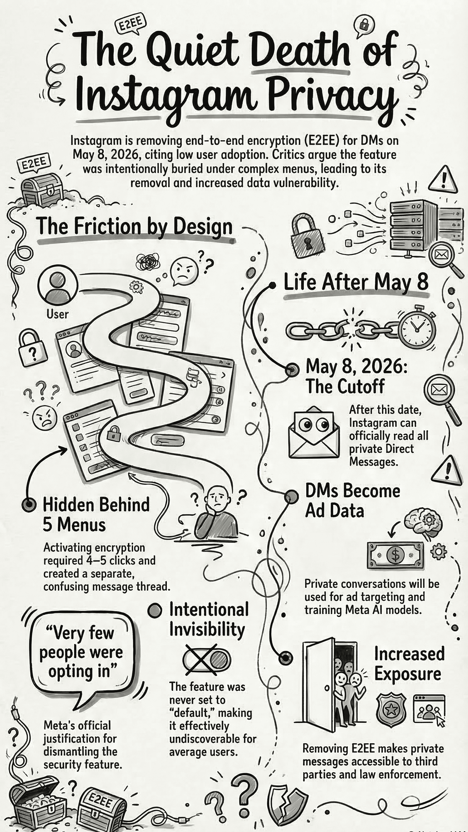 What Instagram's encrypted DMs are leaving behind is not just a feature. It is a reminder worth writing down: the encryption you depend on today can disappear with a policy update you didn't agree to.